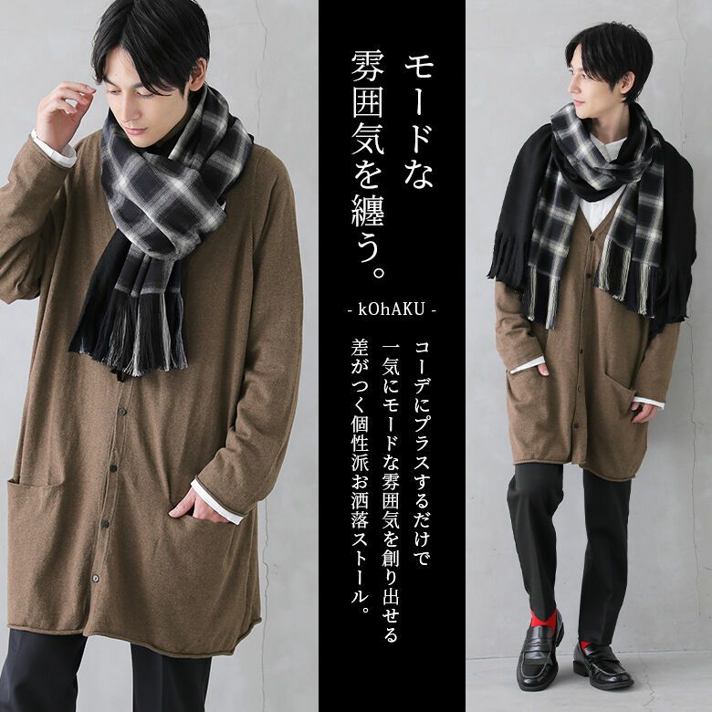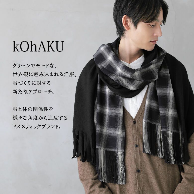 巻き方ひとつで雰囲気変わる≪kOhAKU≫異素材チェックフリンジストールです。