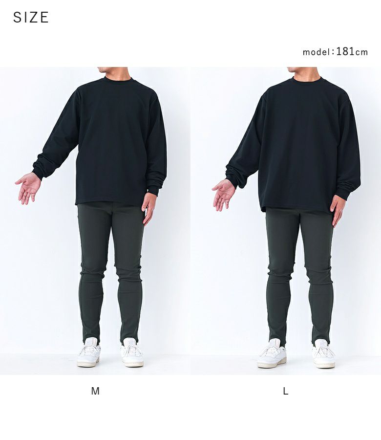【普段着用】 Tops: L Bottoms: L/LL | 【M】 袖丈:手の甲真ん中位 着丈:ヒップ真ん中より上位 腕周り:ややゆったり バスト:ややゆったり 全体:ややゆったり