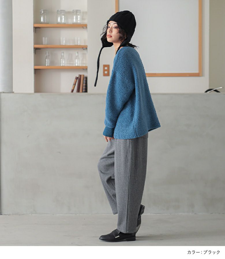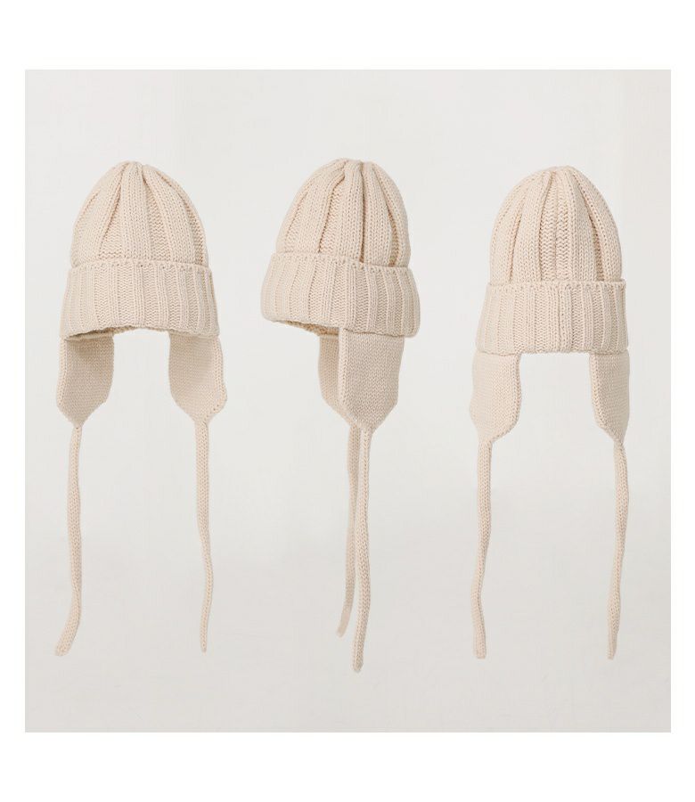 編地に変化を付けたデザインの耳当て付きニットキャップ。