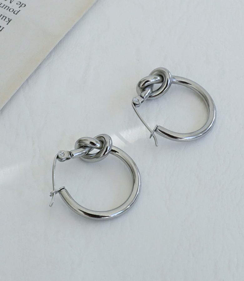 シンプルだけど存在感のある、ノットデザインフープピアス。