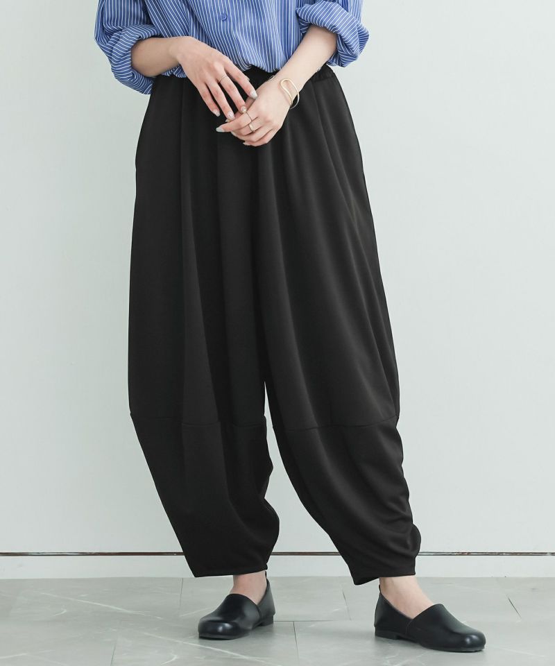 計算された優秀シルエットのコクーンパンツ。