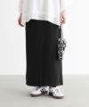 リラックス感のあるリブ生地のマキシ丈ストレートスカート。縦に入った飾りステッチでスタイル良く見えます。ウエストは紐で調節ができ、後ろポケットで気になるヒップ周りもお洒落にカバーできるデザイン。