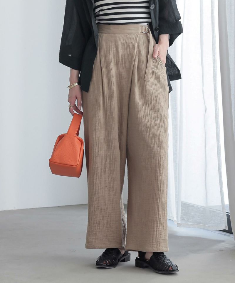 【普段着用】 Tops: M Bottoms: M/L | 【1】 着丈(ウエスト穿き):くるぶしが隠れる位 ウエスト:ジャスト ヒップ:ゆったり 太もも周り:ゆったり 全体:スッキリ