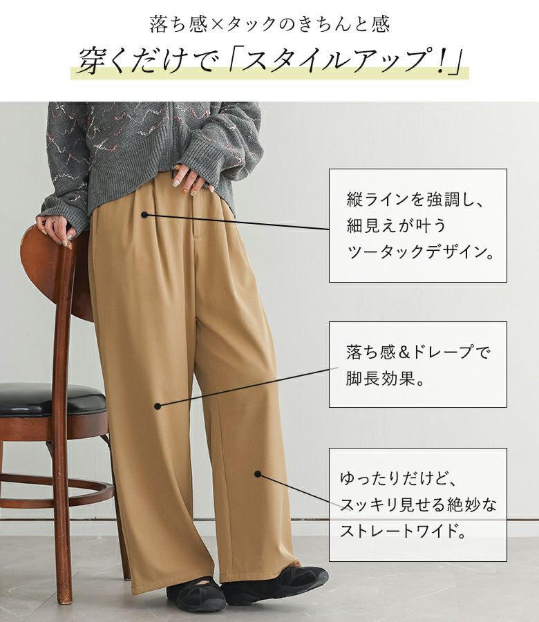 選べる3サイズ展開!嬉しいマシンウォッシャブル♪ゆったりだけどすっきり見せる、絶妙ストレートワイドパンツ。