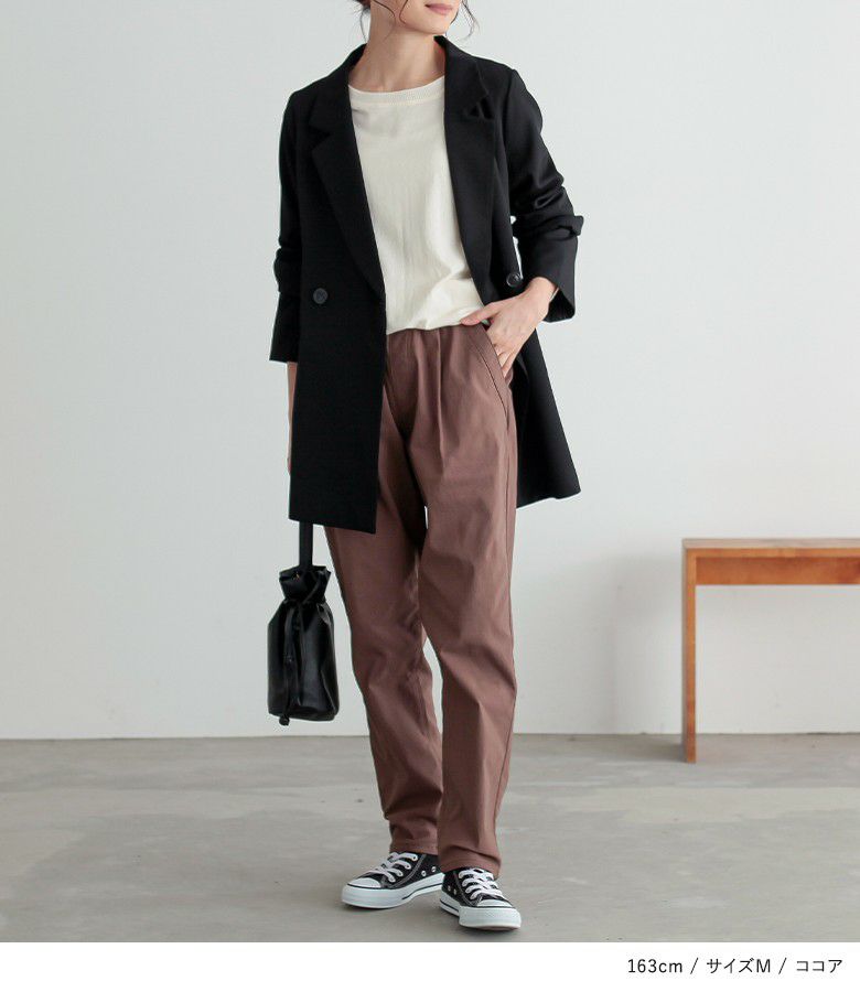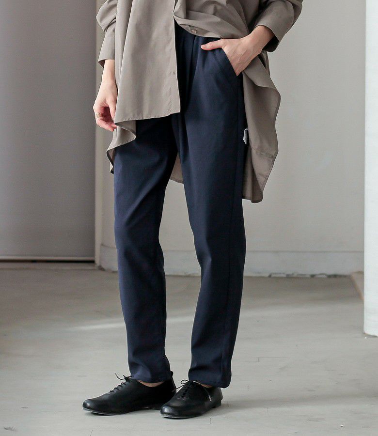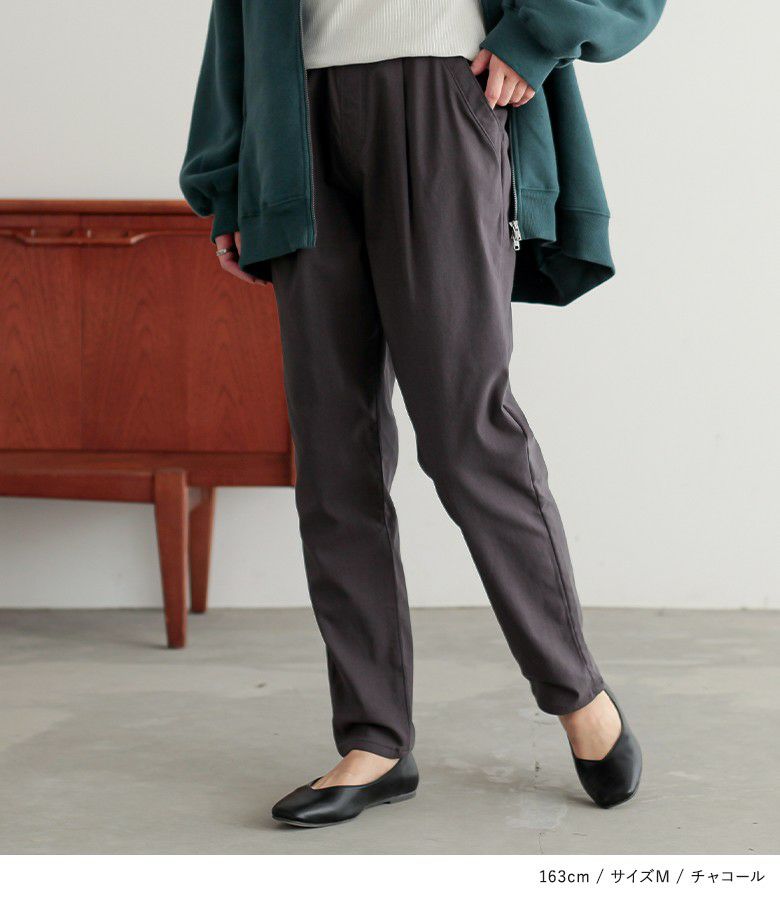 | 【S】 着丈(ウエスト穿き):くるぶしが隠れる位 ウエスト:ややゆったり ヒップ:ジャスト 太もも周り:ややゆったり 全体:スッキリ