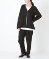 様々なインナーと合わせやすいノーカラージャケット×すっきりとしたテーパードパンツのセットアップ。ジャケットはフレアシルエット、パンツは腰回りゆったりで体型カバーを実現。
