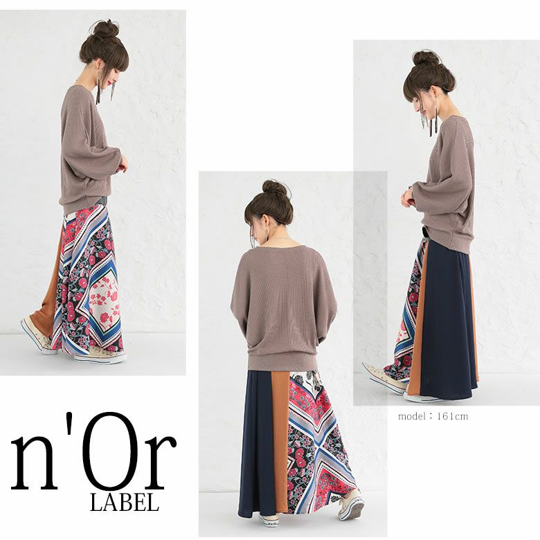 5. 『n'OrLABEL異素材スカーフ柄切替スカート』【メール便不可】