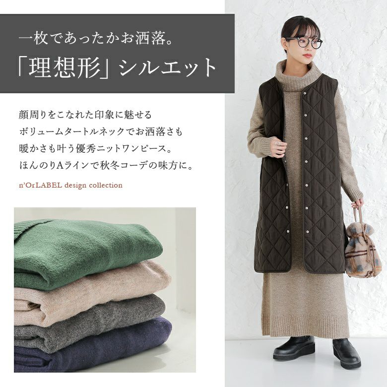 秋冬の季節に手放せない、お洒落の味方≪n'OrLABEL≫ボリュームタートルニットワンピースです。