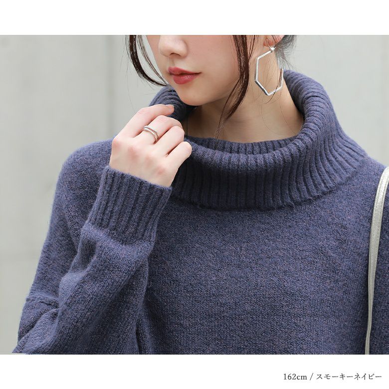 一枚で、あったかお洒落が手に入る。顔周りを印象的に魅せるボリュームタートルネックで首元までしっかり暖かい、優秀ニットワンピース♪