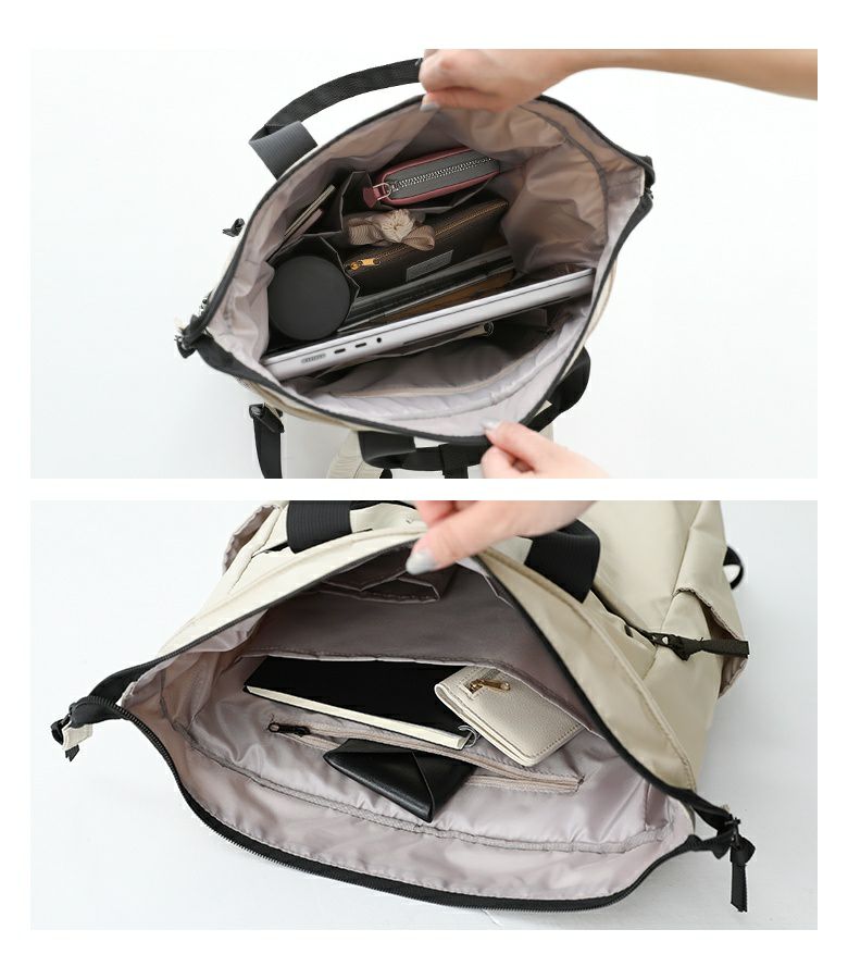10個のポケットがついた多収納のリュックサック。