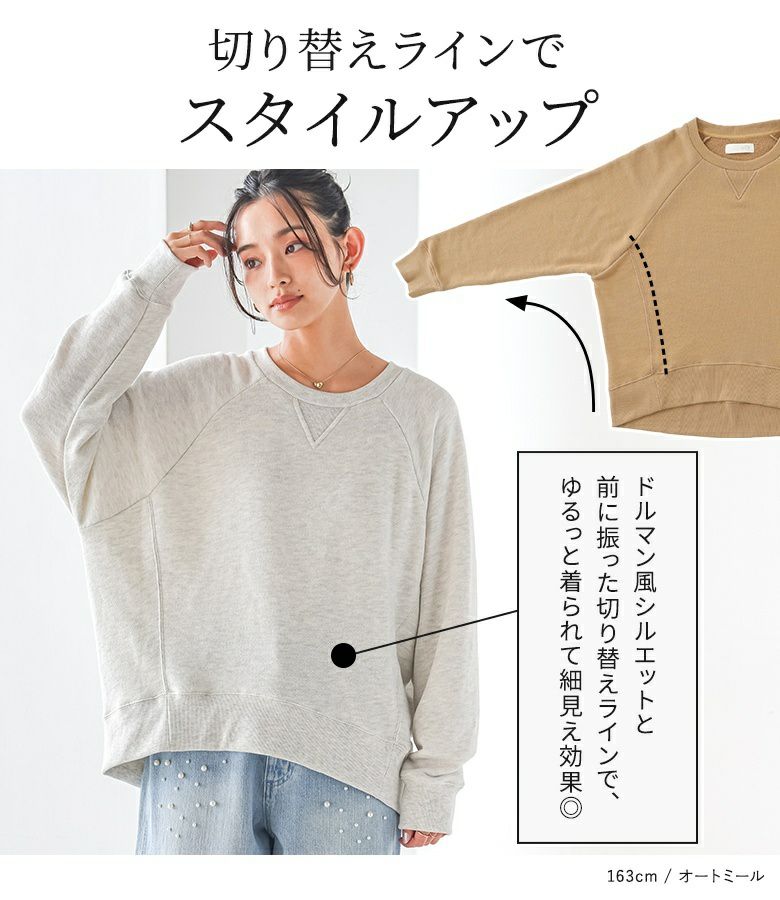 ゆるっと着られるのにスタイルを良く見せ、どんなボトムスにも合う絶妙丈スウェット。