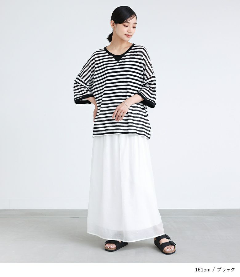 スラブ調でシアー感のあるカットソー生地を使用したボーダー柄トップス。