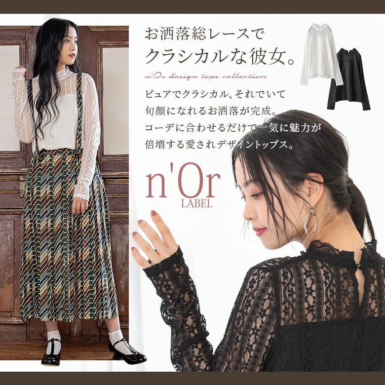 お洒落に可愛く魅力を引き立てる≪n'OrLABEL≫クラシカルデザインレースブラウスです。