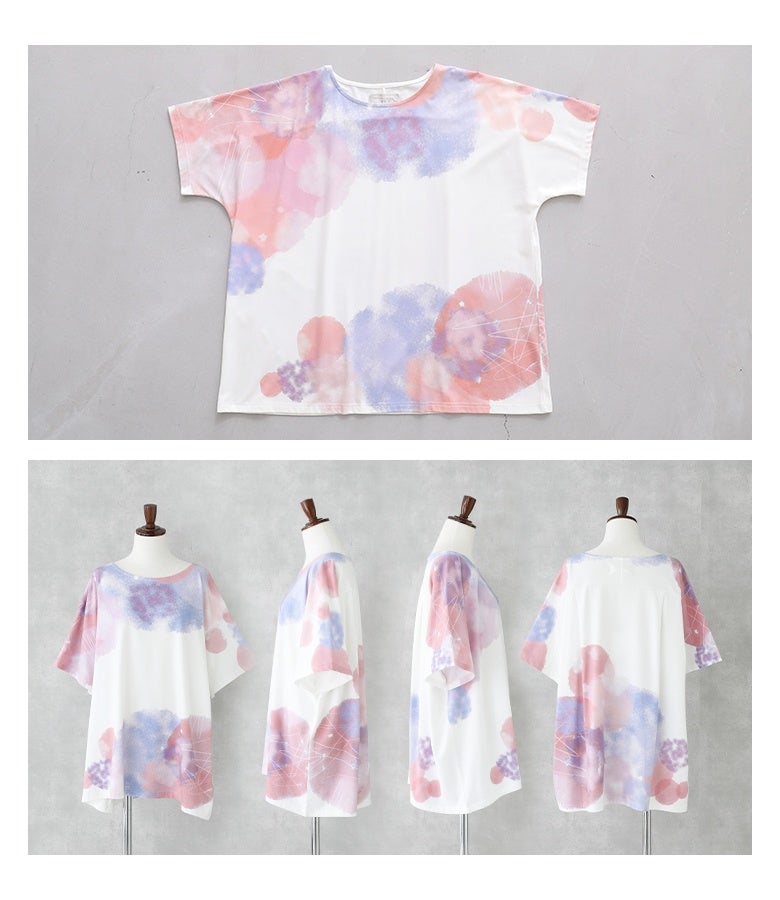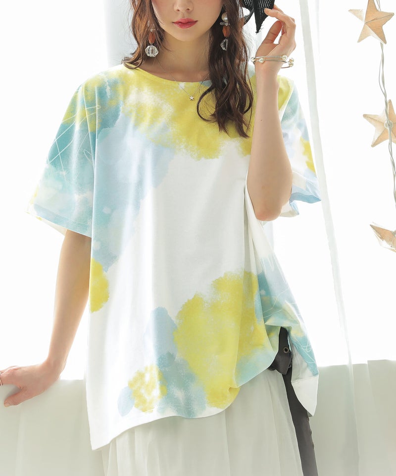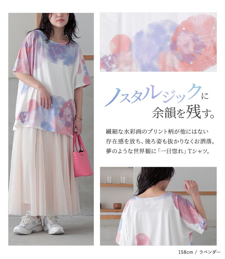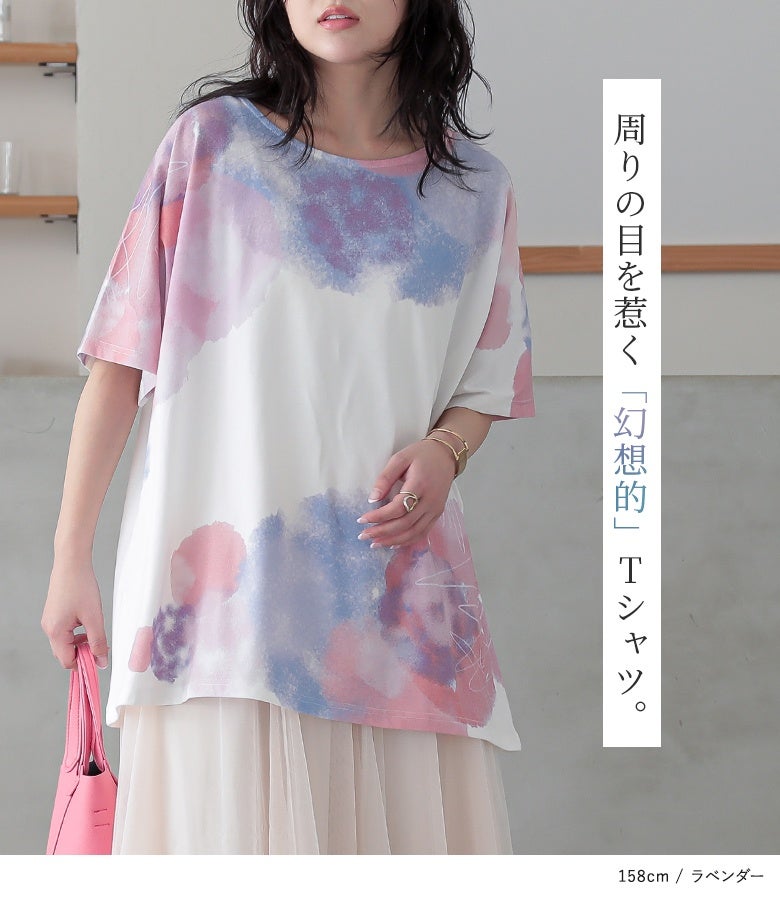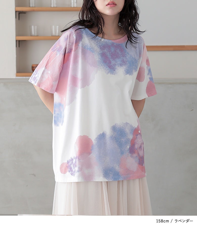 周りの目を惹く幻想的な水彩プリントTシャツ♪