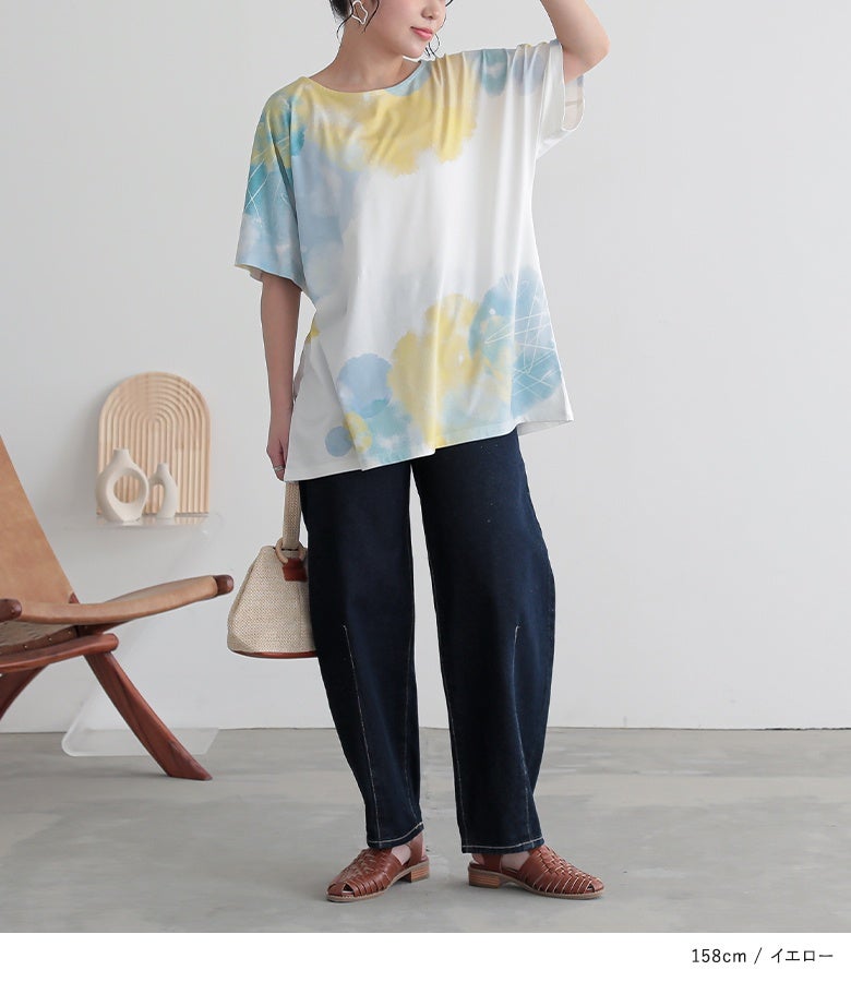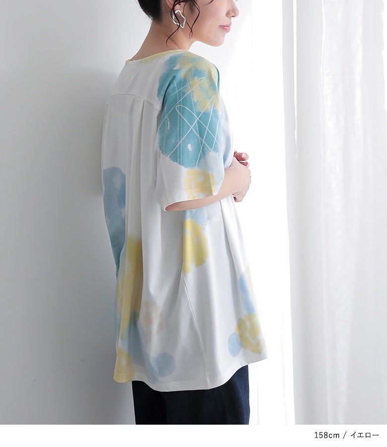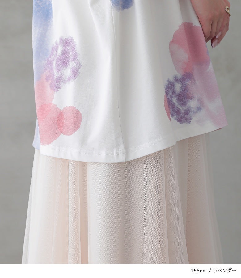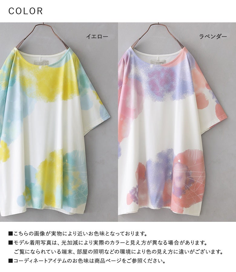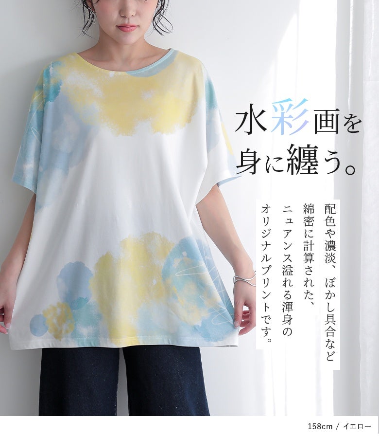 周りの目を惹く幻想的な水彩プリントTシャツ♪