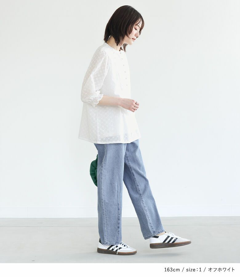 デニムやシンプルなデザインのボトムスと合わせて、ナチュラルな着こなしをお楽しみいただけます。