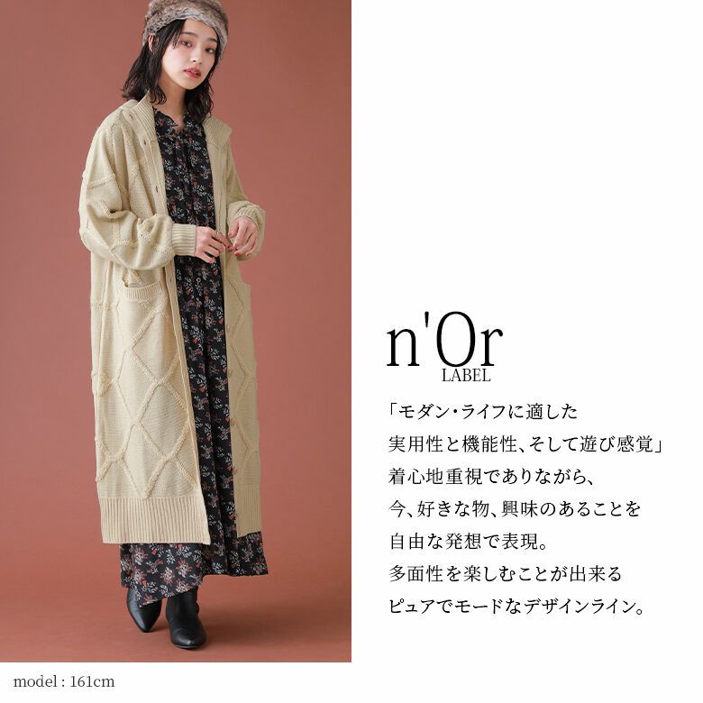他の画像を見る 雰囲気高まるループ編みダイヤ柄ロングニットカーデ 『n'OrLABELループ編みダイヤ柄ロングニットカーディガン』【メール便不可】【30】 ¥ 6,490 税込 SOLD OUT 4.57 (7)