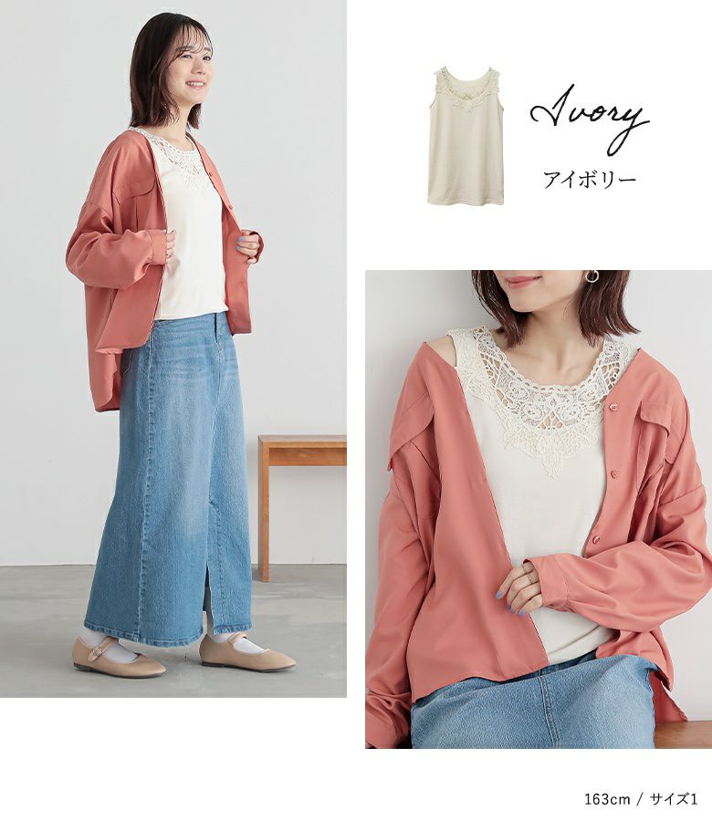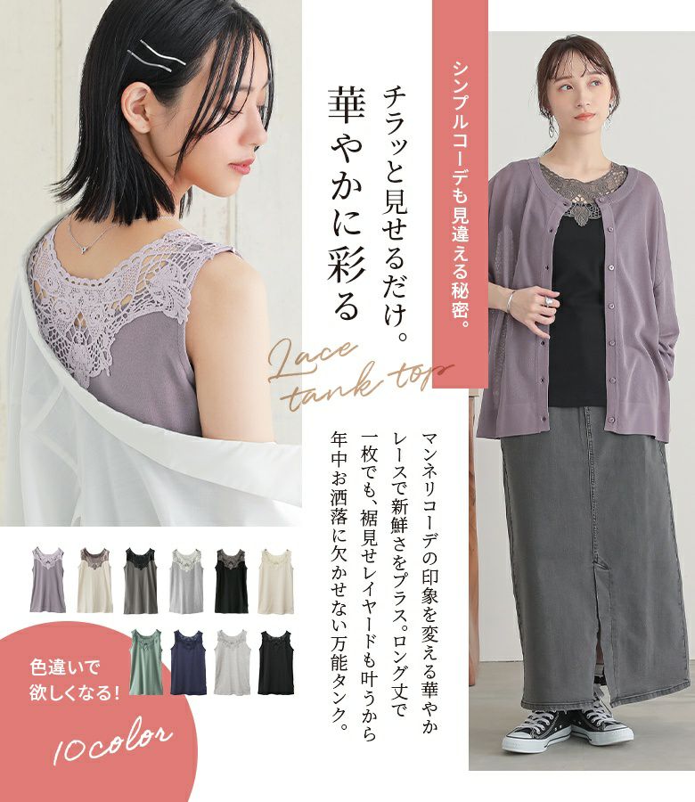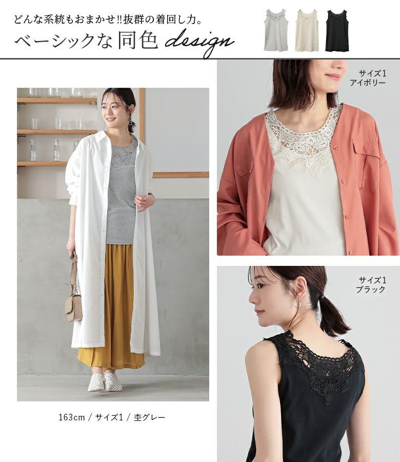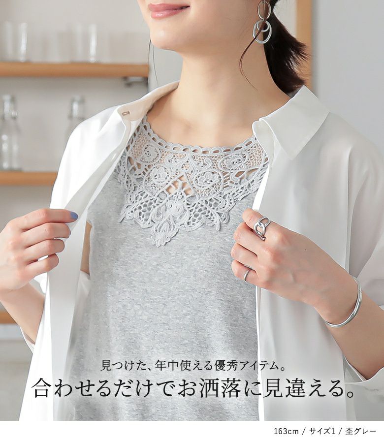 他の画像を見る 【3/3販売】選べるM~3Lサイズ展開!コーデが見違える襟元レースタンク♪ 『n'OrLABEL襟元レースデザインタンク』※メール便可※【5】 ¥ 2,590 税込 4.70 (223)