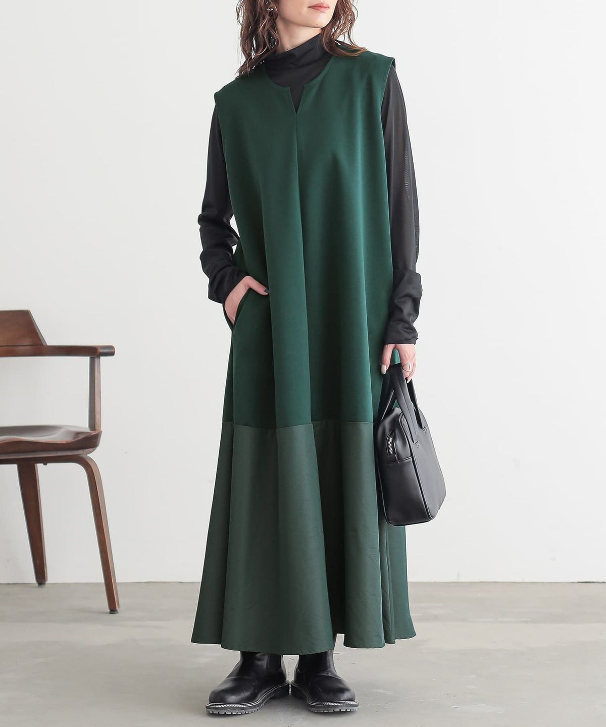 他の画像を見る 選べる2サイズ展開!すっきり見えと大人な印象をプラスするワンピース。 『n'OrLABEL異素材切替えノースリーブワンピース』【メール便不可】【30】 ¥ 3,960 税込 5.00 (1)