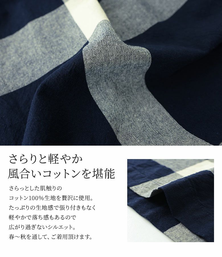 肌触りの良さ、着やすさえを追究したオリジナル素材で、ナチュラル&カジュアルな大人のデイリーウエアを提案しています。