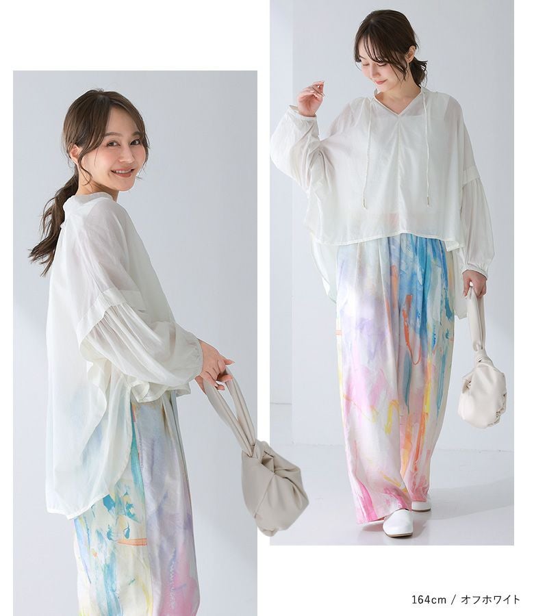全体的にゆるっとしているので、気になるウエスト・ヒップ周りが隠れて体型カバーが叶います♪