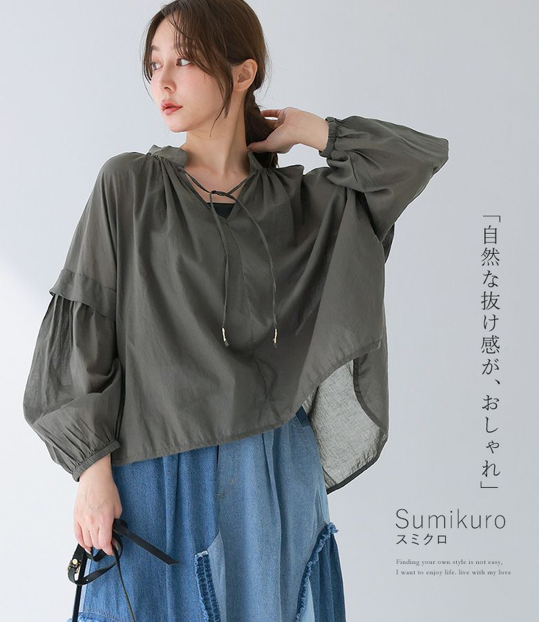 『50%OFFセール★OUKA SELECTキーネックブラウス』