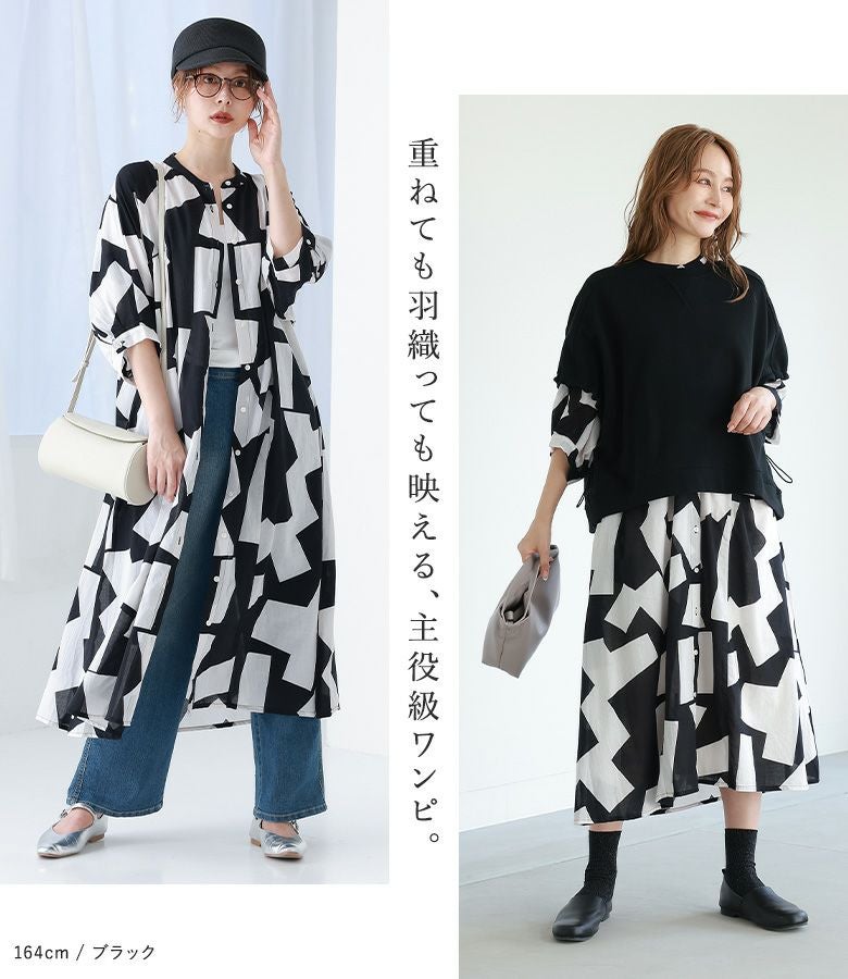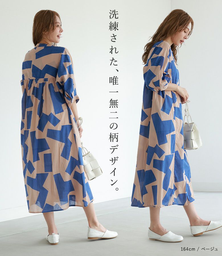 『50%OFFセール★OUKA SELECT幾何学柄プリントワンピース』