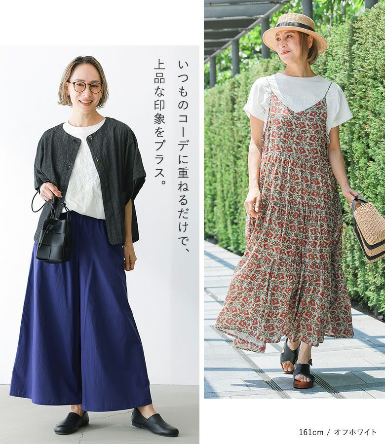 大人の女性がオフの時間を過ごす時、ナチュラルな優しい素材とともに繊細で上品さのある服を着ていたい・・・