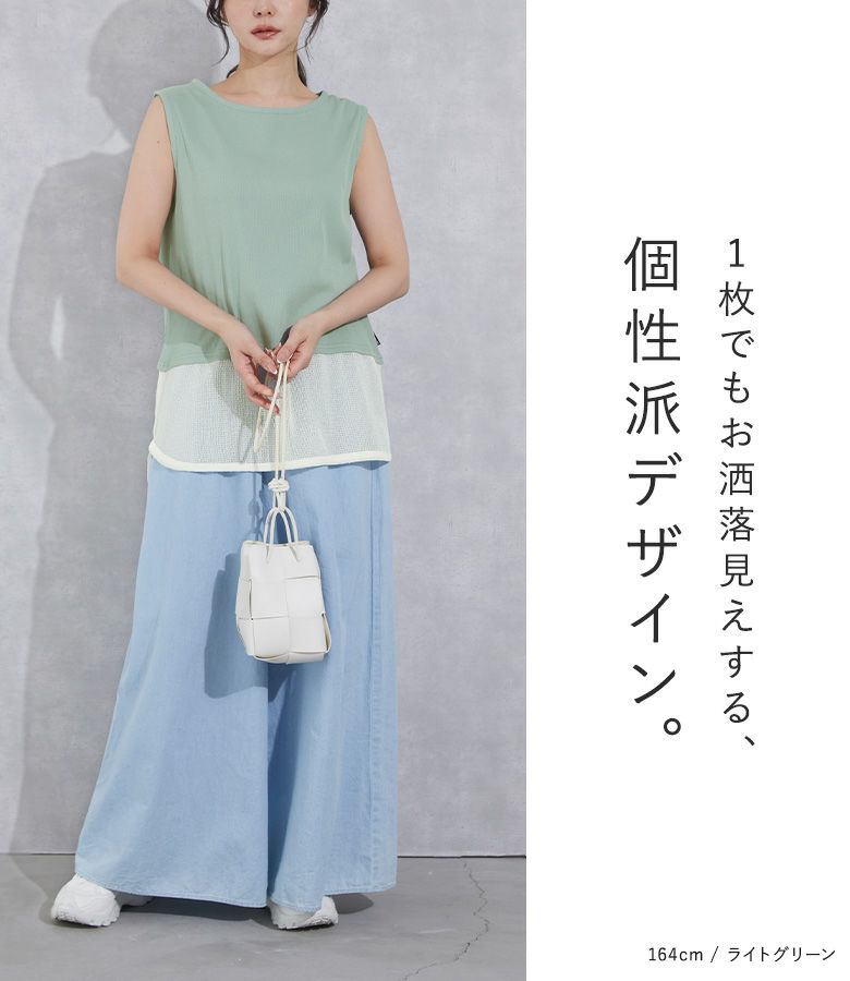 『40%OFFセール★OUKA SELECT裾メッシュタンクトップ』