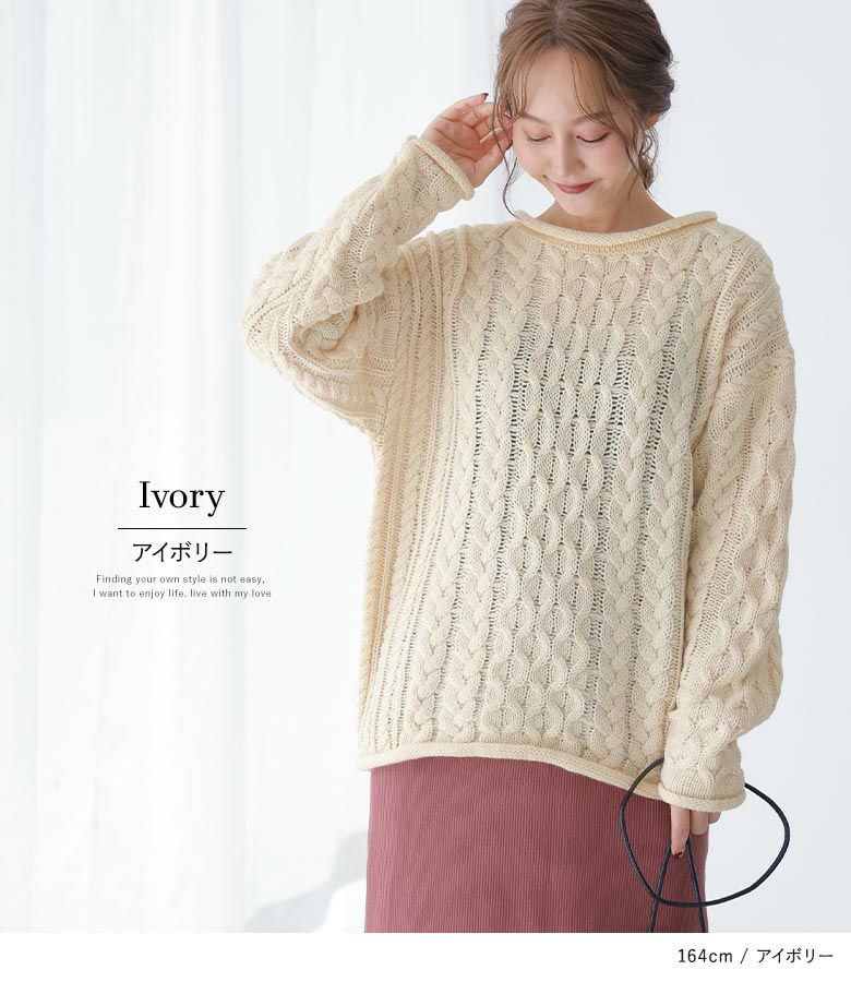 『50%OFFセール★OUKA SELECTローゲージケーブル編みニット』