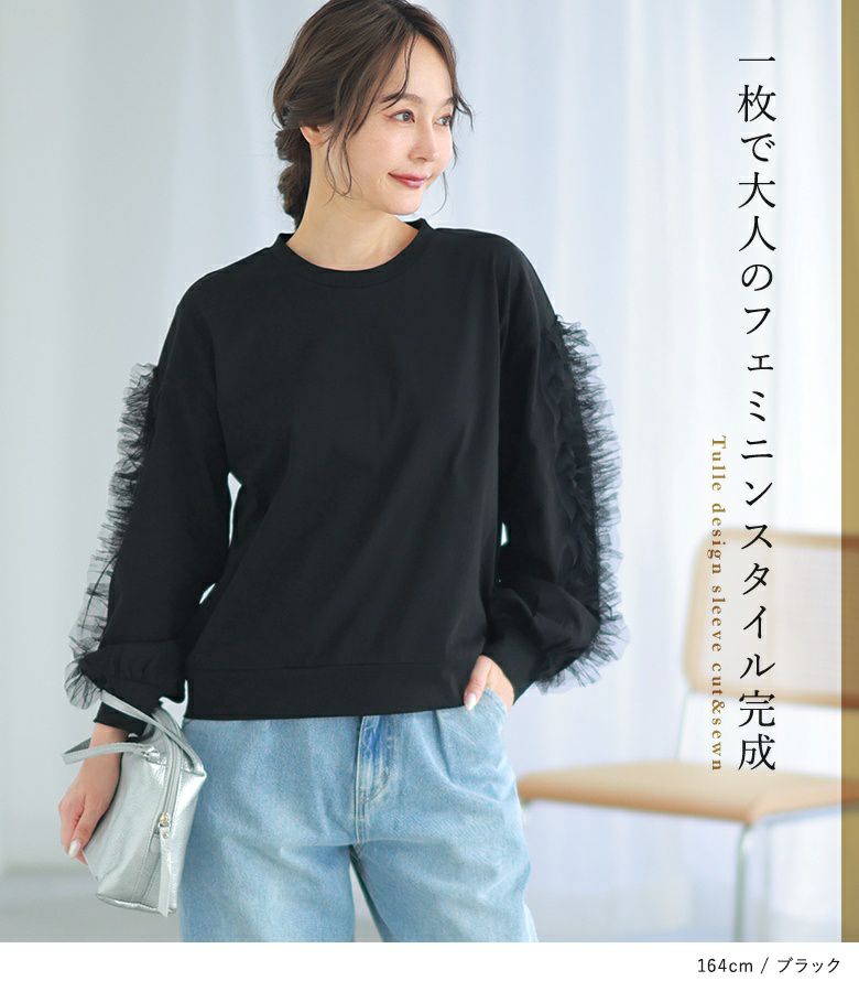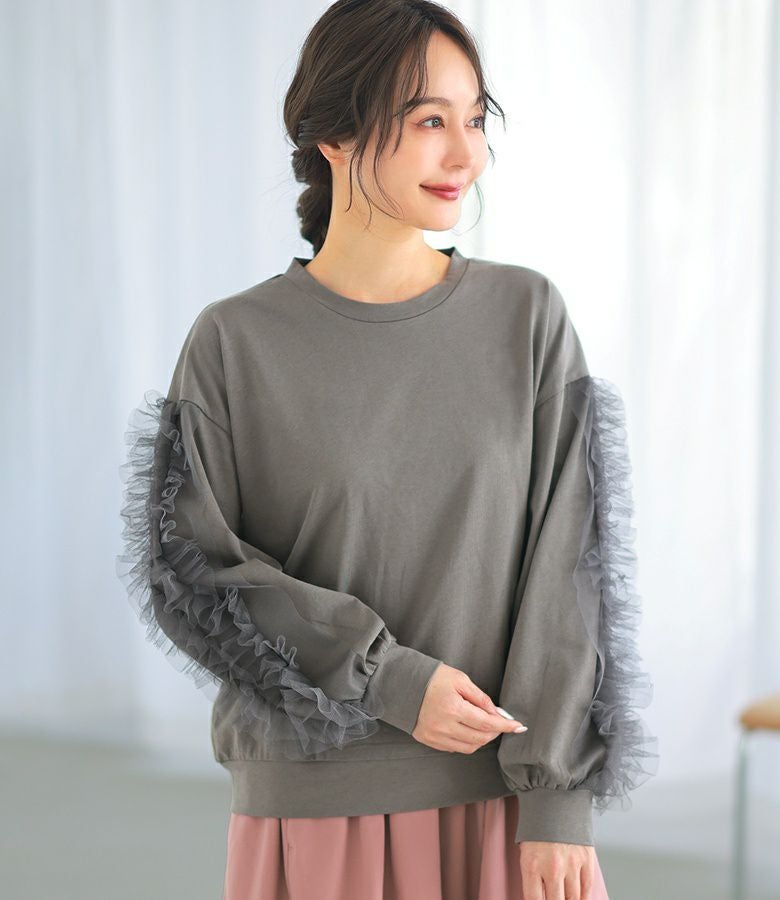 『50%OFFセール★OUKA SELECT 袖フリルチュールカットソー』