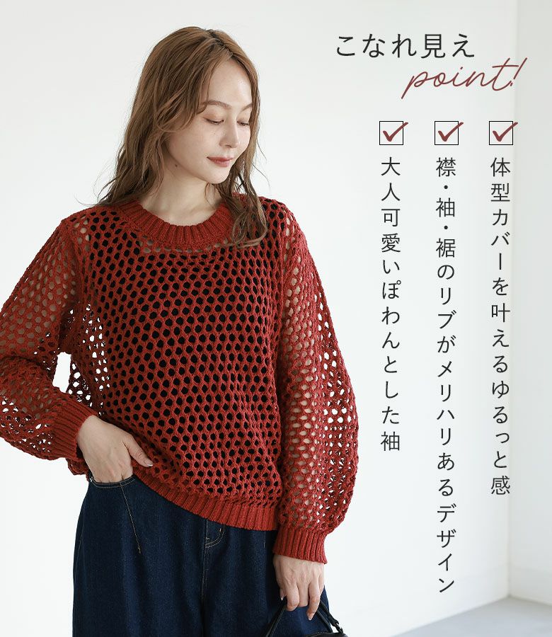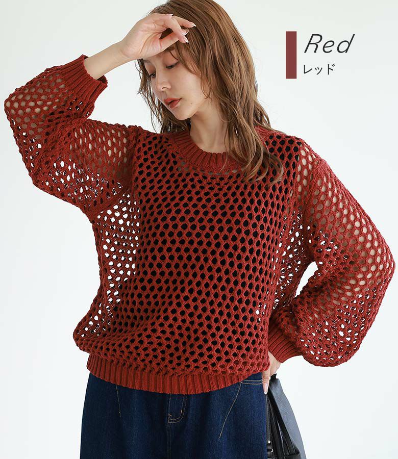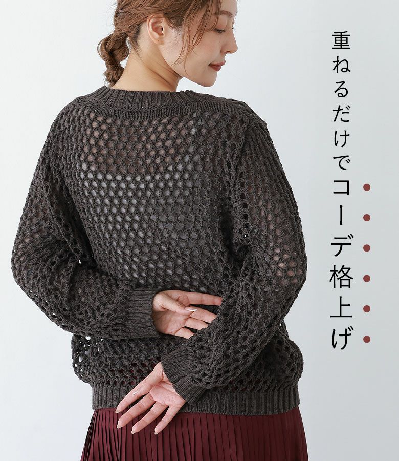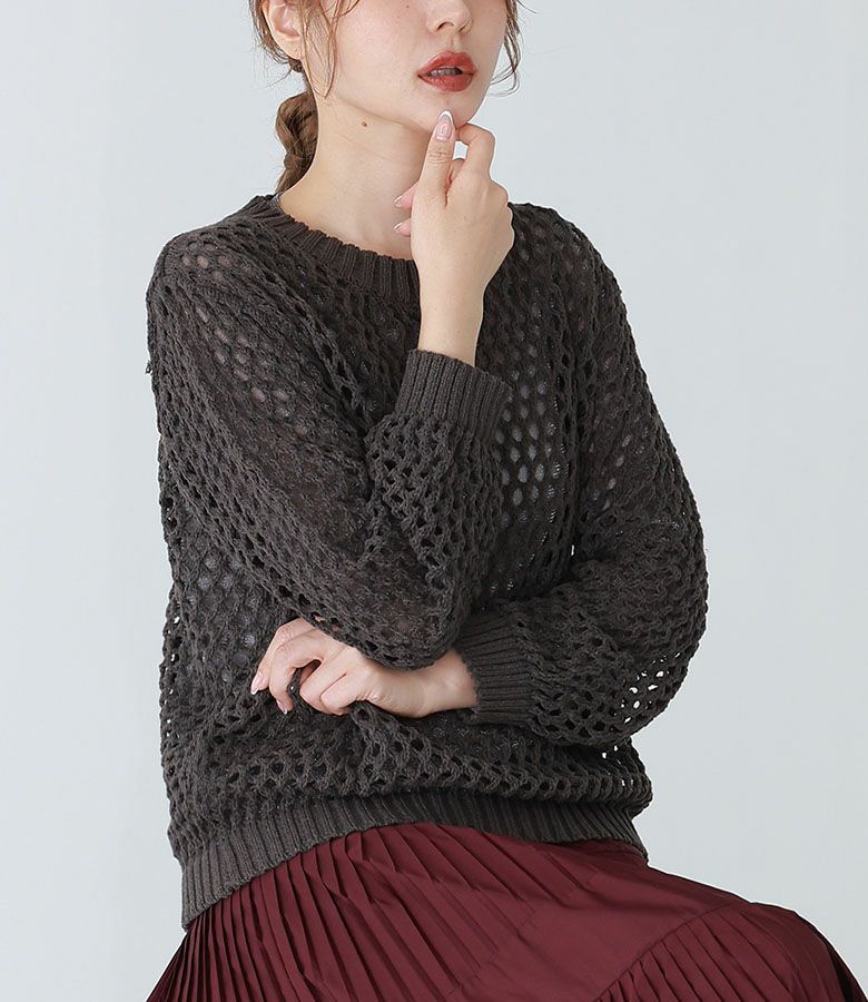 『30%OFFセール★OUKA SELECTメッシュ編みニットトップス』