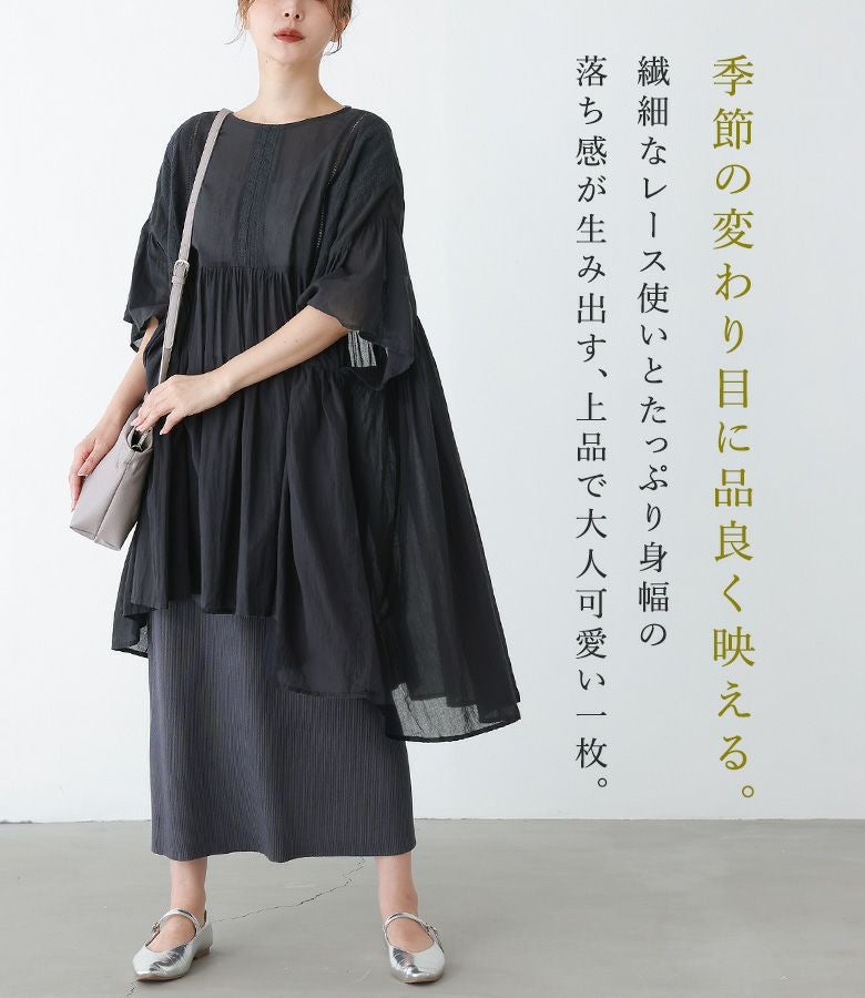 『50%OFFセール★OUKA SELECTレースギャザーチュニック』