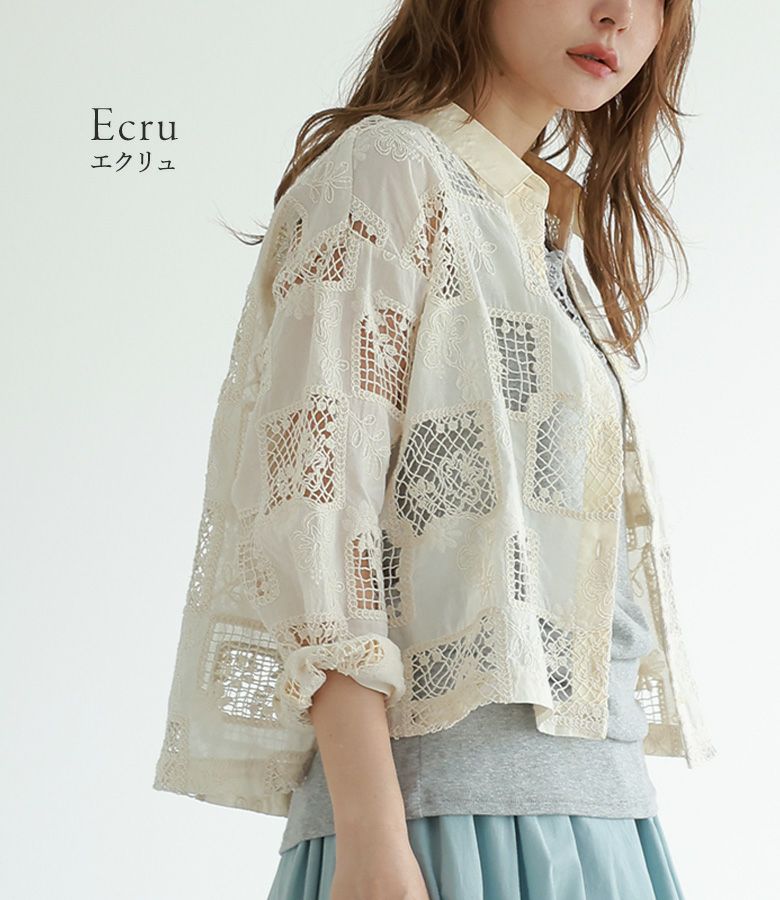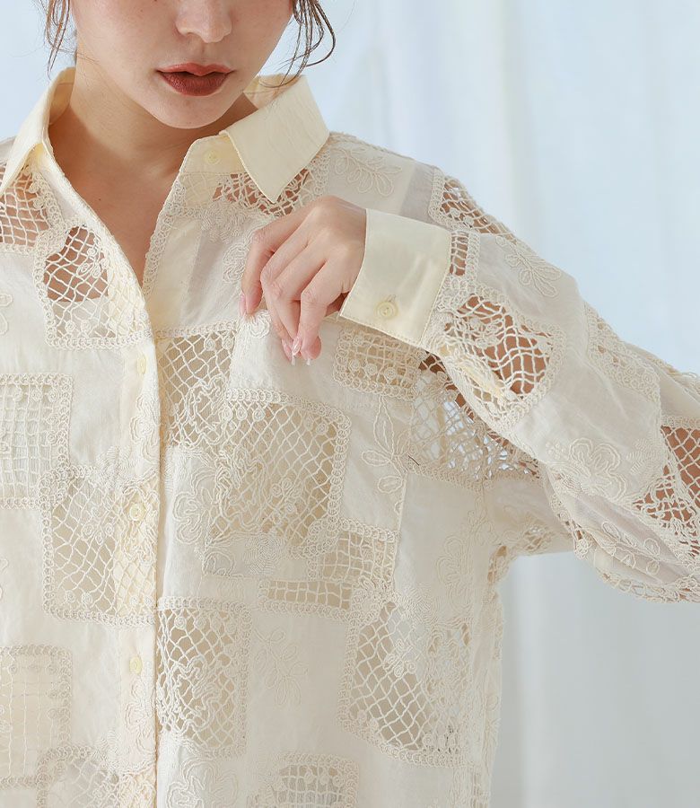 『50%OFFセール★OUKA SELECTコードオーバーレースシャツ』