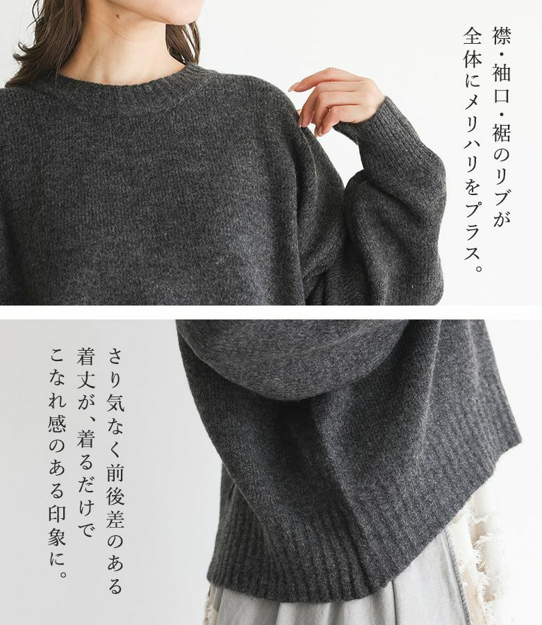 『OUKA SELECTショート丈クルーネックプルオーバーニット』
