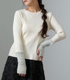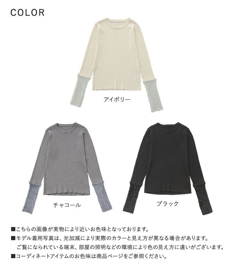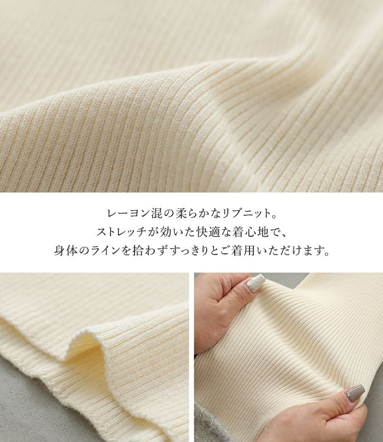 リブ素材でしめつけ感なく、すっきりしたシルエットで着用できました。袖口は上からアウターを羽織った時もポイントになって、とにかくかわいいです。