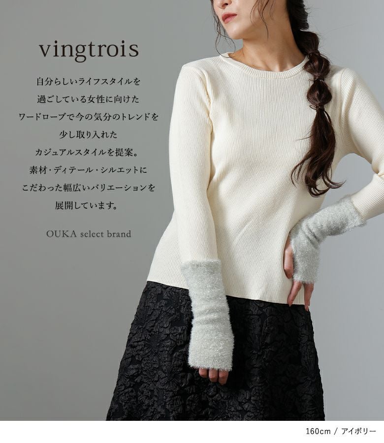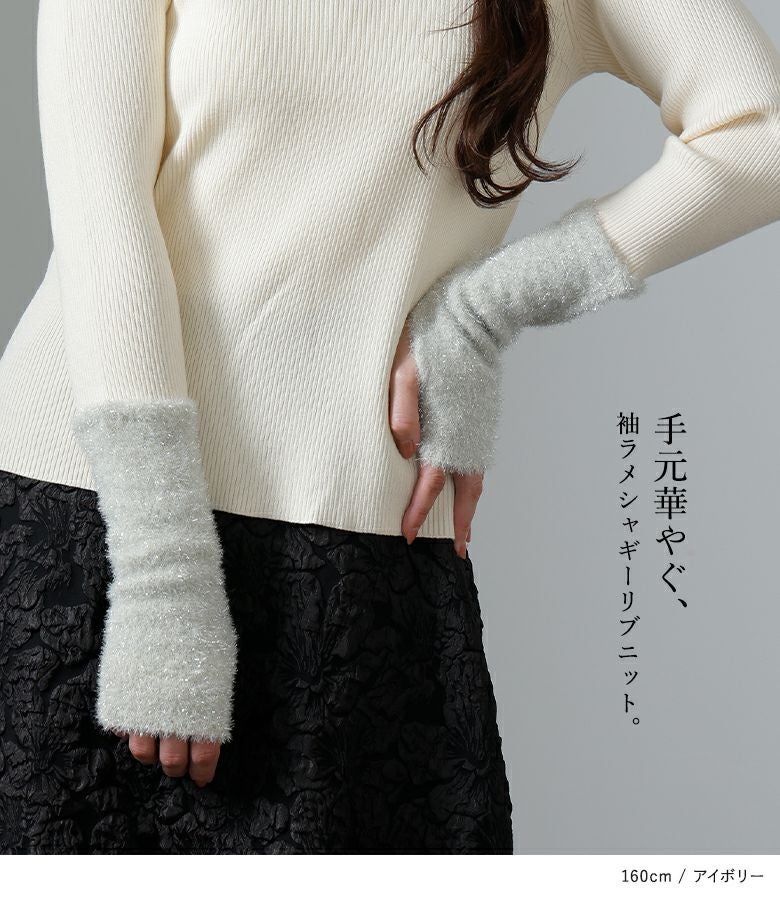 『70%OFFセール★OUKA SELECT 袖ラメシャギーリブニット』