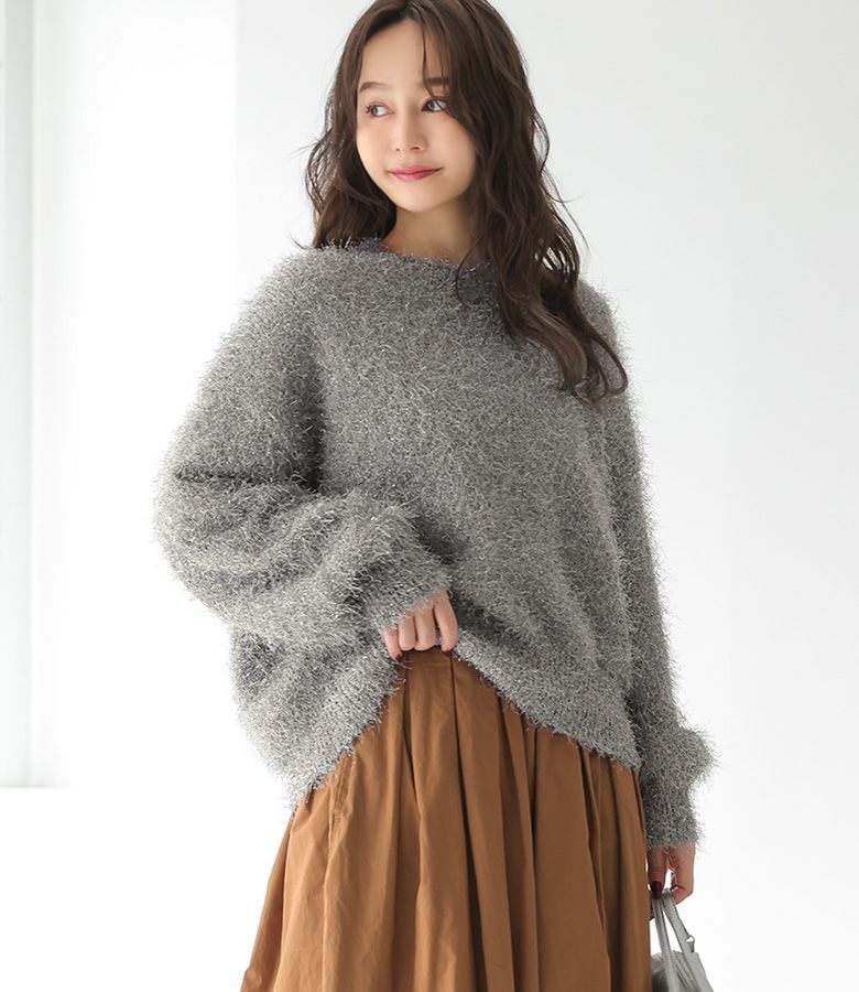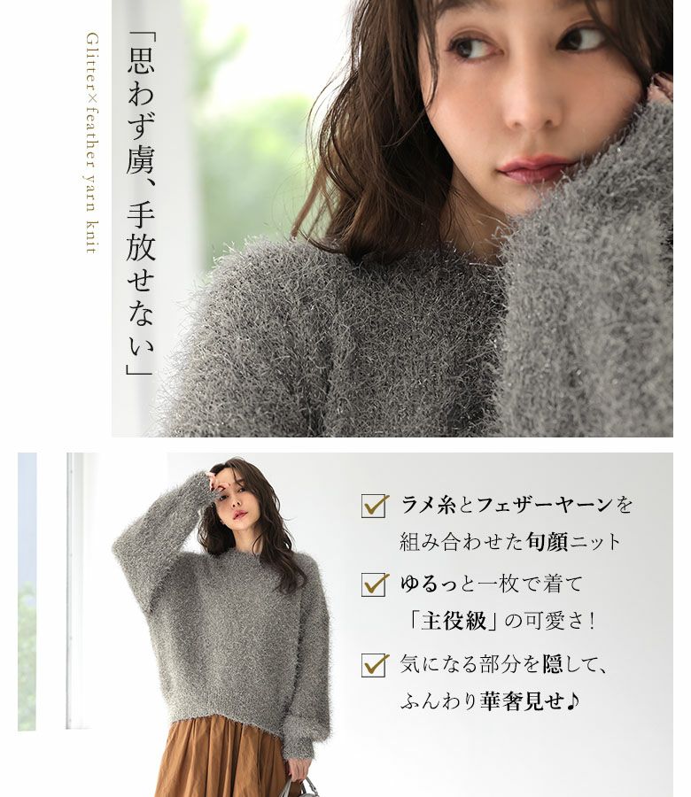 『30%OFFセール★OUKA SELECTラメフェザーヤーンニット』