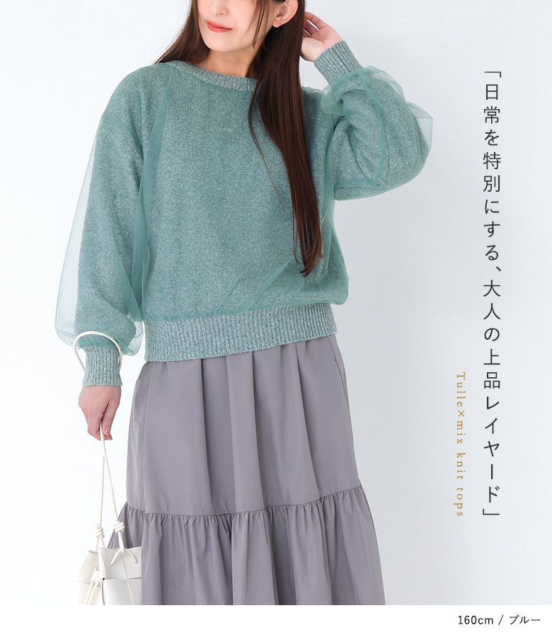 『50%OFFセール★OUKA SELECTチュールレイヤードニット』