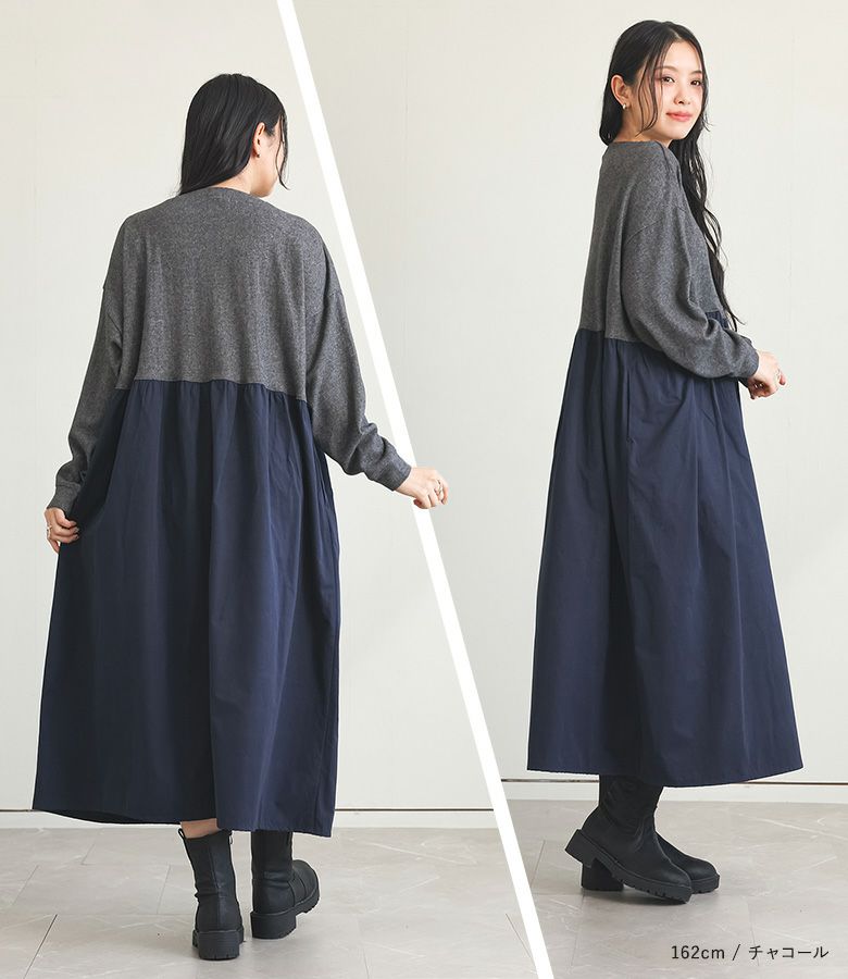 5. 『OUKA SELECTウール混ニットコンビギャザーワンピース』【メール便不可】【30】