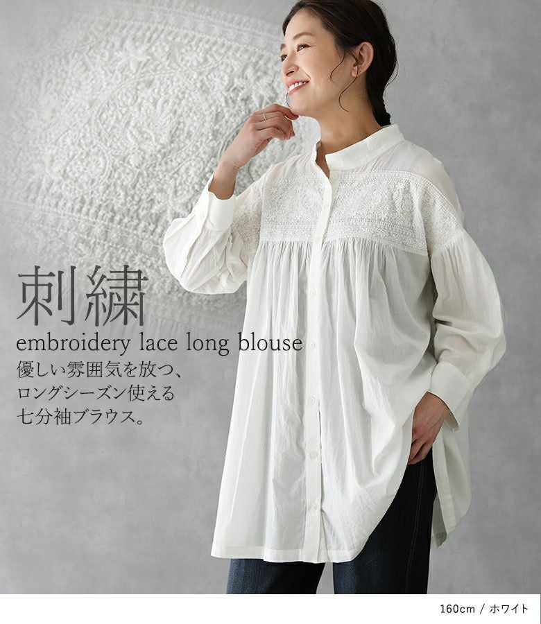 『60%OFFセール★OUKA SELECT 刺繍ロング丈ブラウス』