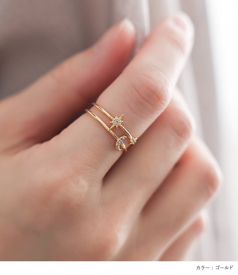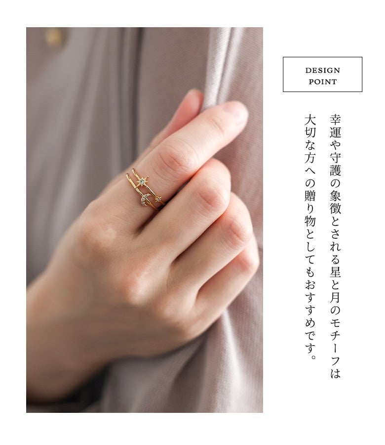 他の画像を見る カジュアルにもフェミニンにも馴染むスタームーンリング。 『スタームーンリング』※メール便可※【2】 ¥ 1,870 税込 販売開始前です。 販売期間 2026/03/09 10:00 〜 2027/03/02 23:59 (0)