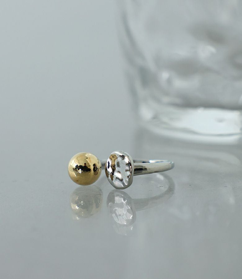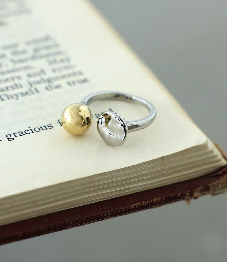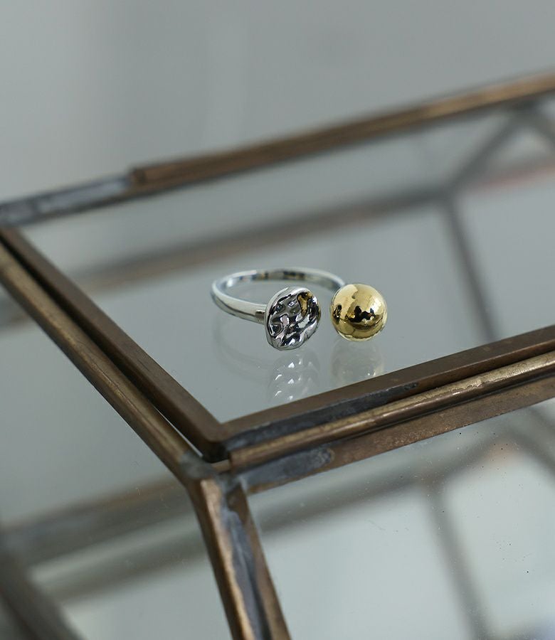 印象的な手元を印象つけるミックスカラーデザインリング。