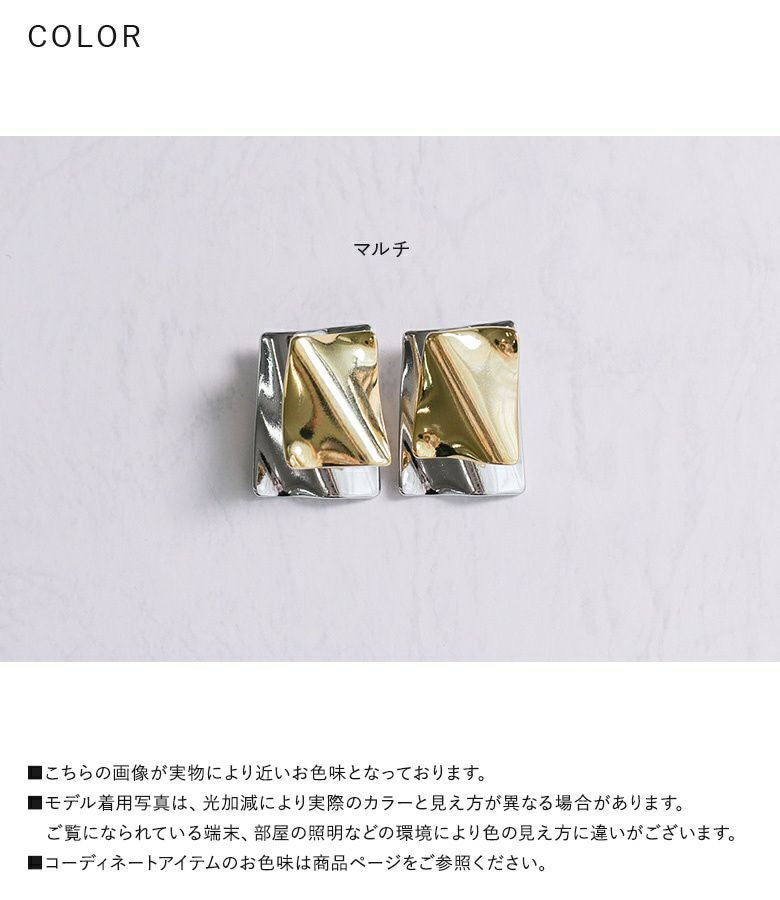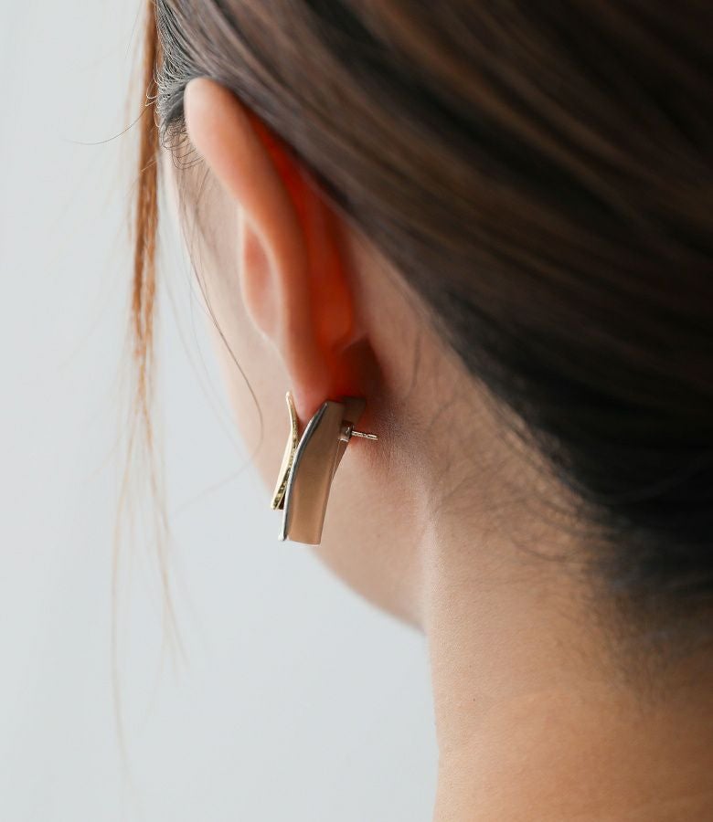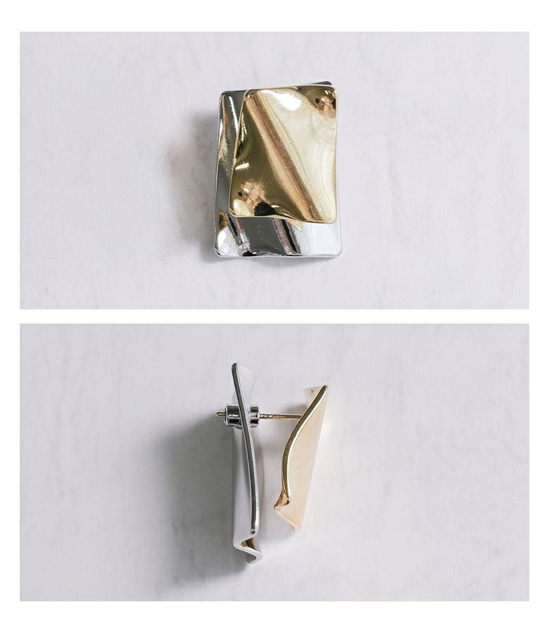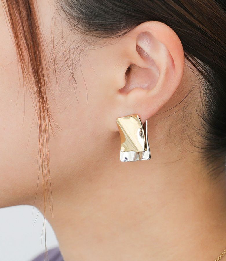 シルバーモチーフがキャッチになったスクエア2トーンピアス。