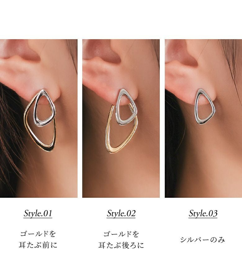 取り外し可能だから3wayで楽しめる2トーンカラーピアス。