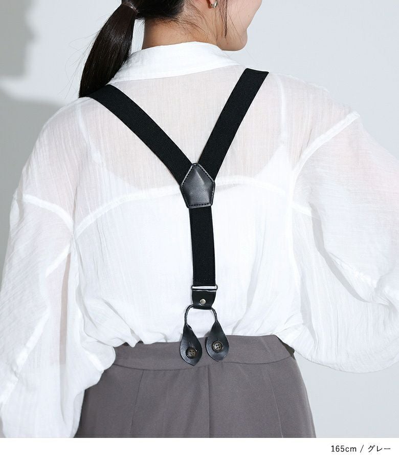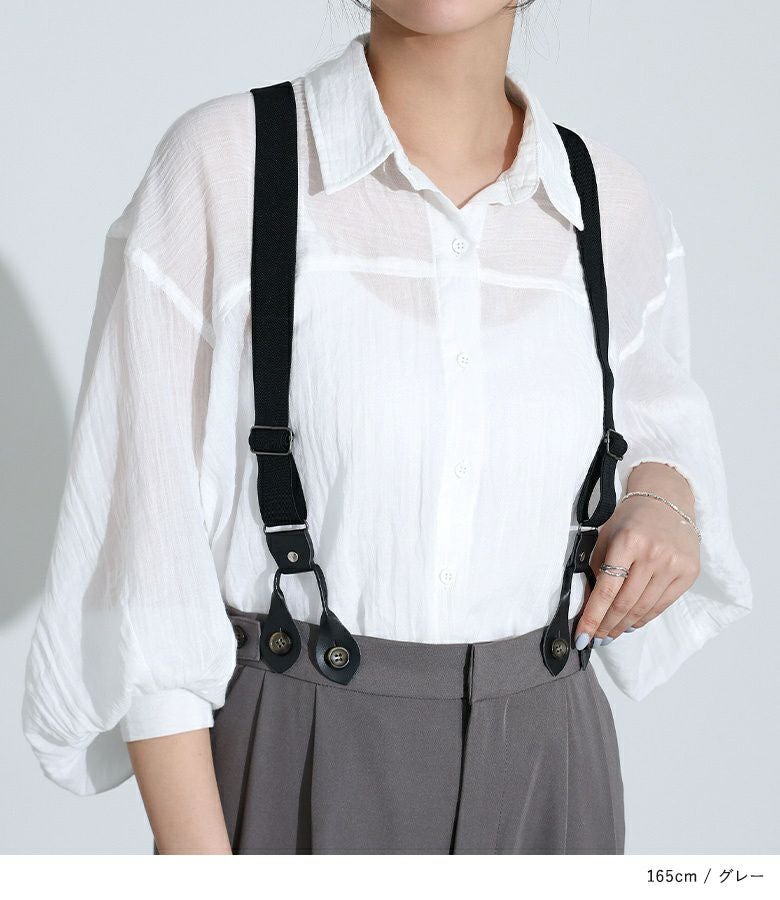 サスペンダースタイルの際は、ロンTと合わせてナチュラルにもボーイッシュにも。パンツスタイルの際は、ブラウスと合わせた綺麗めコーデまで幅広いスタイリングに使用できるアイテムです。