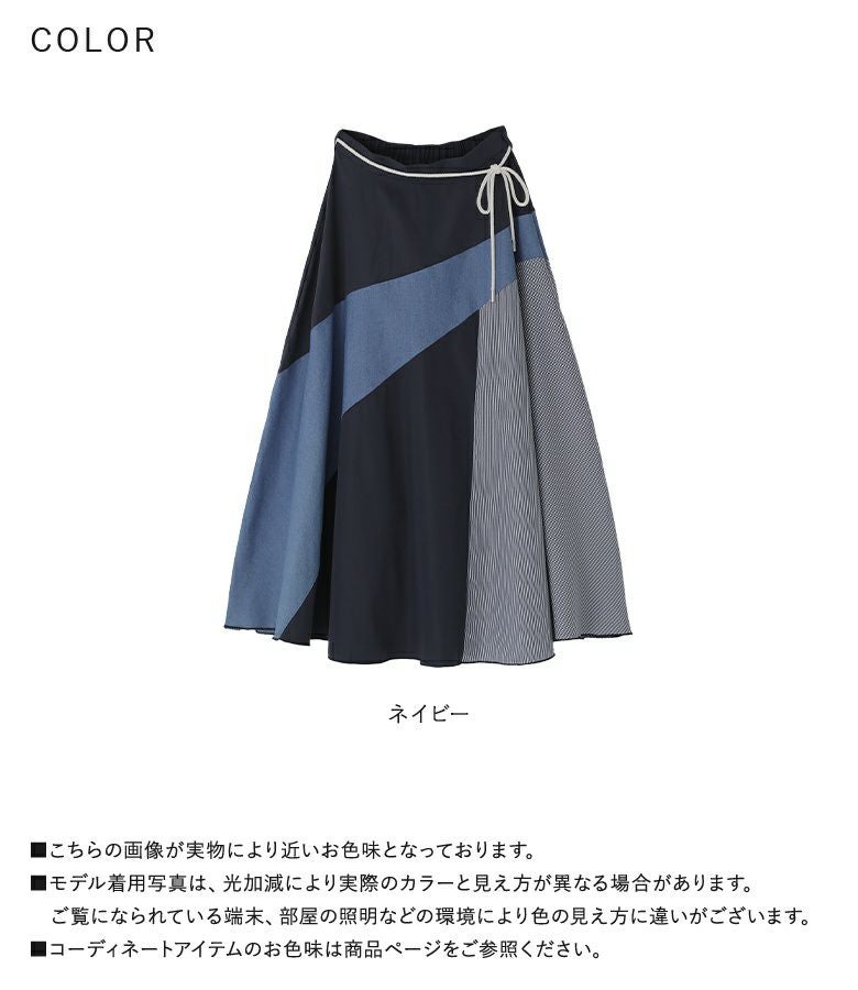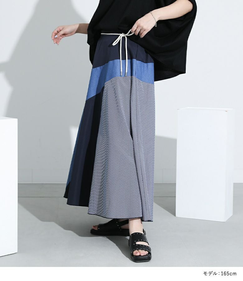 異なる素材を組み合わせた、表情豊かなロングスカート。