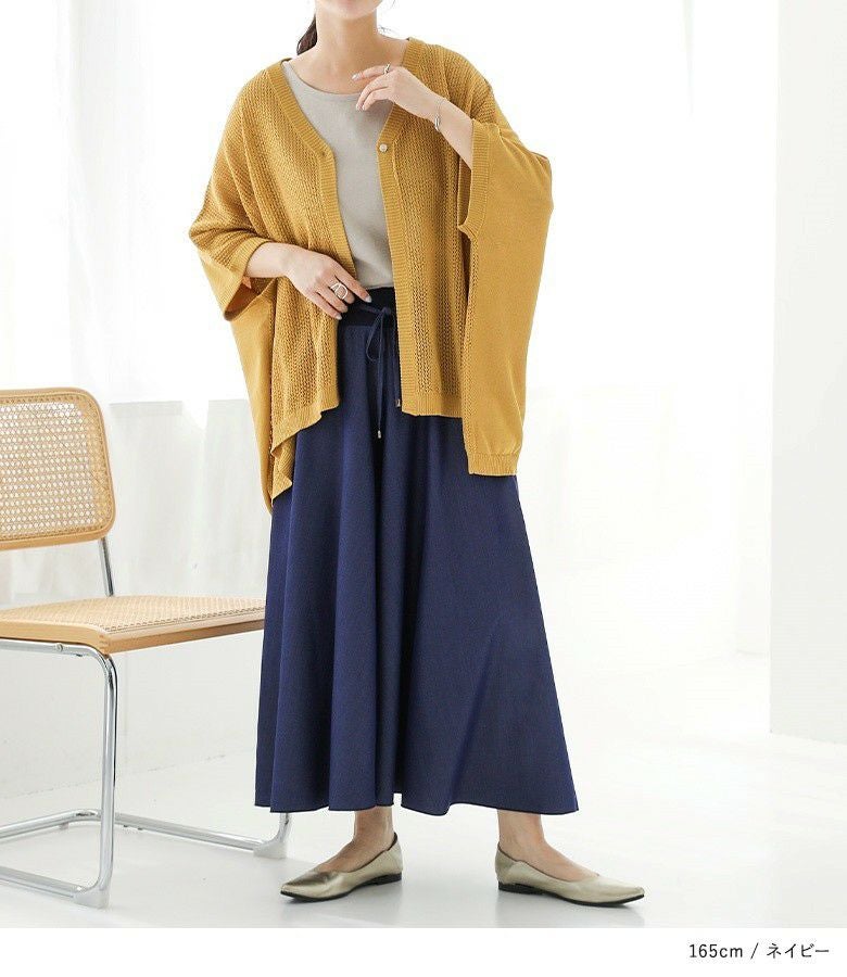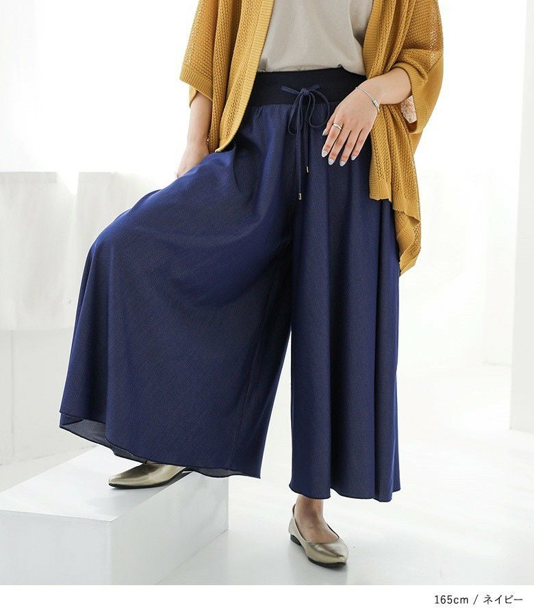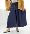 すっきりとしたAラインで、細見えが叶うガウチョパンツ。ウエストはゴム仕様で、楽ちんな穿き心地が叶います。サイズが調整できる紐付きのため、お好みのサイズに合わせてご着用いただけるのも嬉しいポイント。