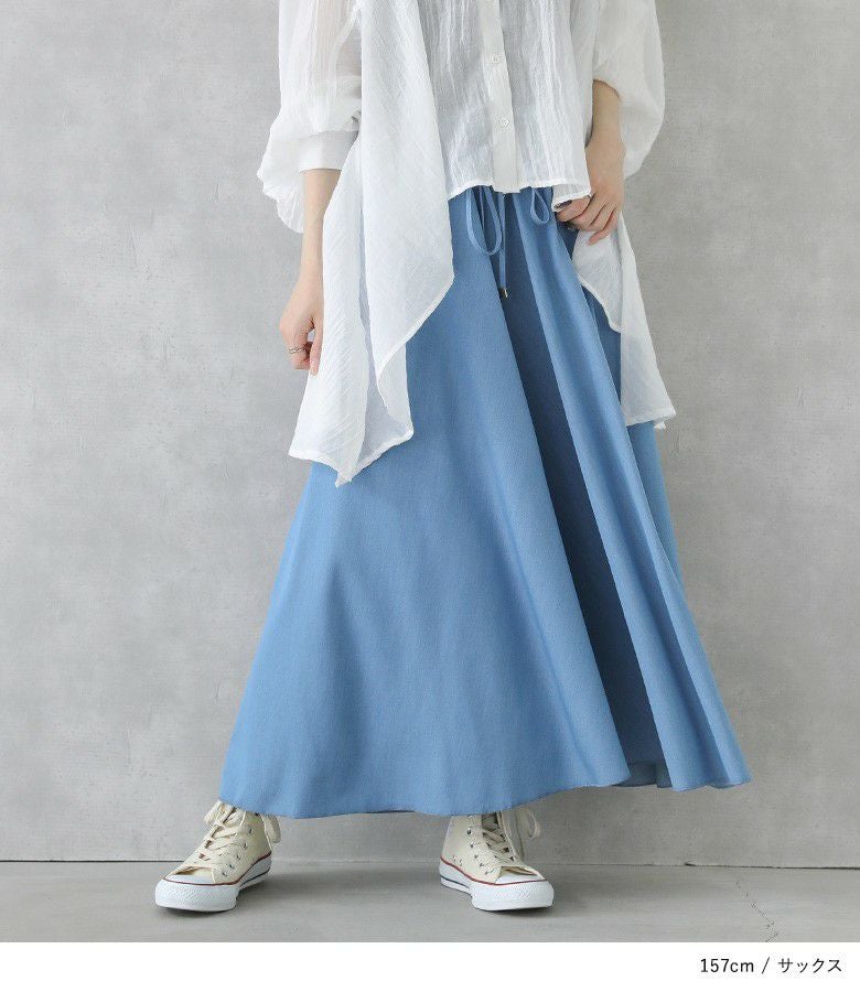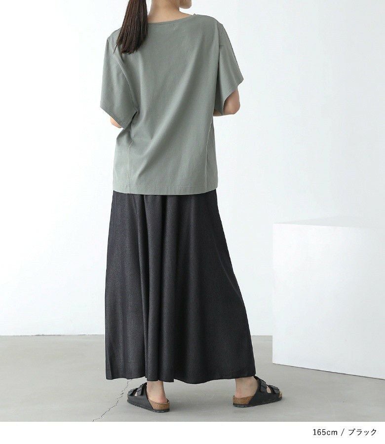 脚のラインを出さずラクにはけるので気に入っています。柔らかくゆったりした感じがスカートのようにも見え、動くとひらりとする感じが好きです。スタイルが良く見える気がします^ ^ 個人的には、もう少しウエストのゴムが緩ければいいなと思ったのと、若干テカリがある生地で少し苦手だったので星一つマイナスにさせてもらいました。 着心地、シルエットはお気に入りなので、サックスの購入も検討中です♪