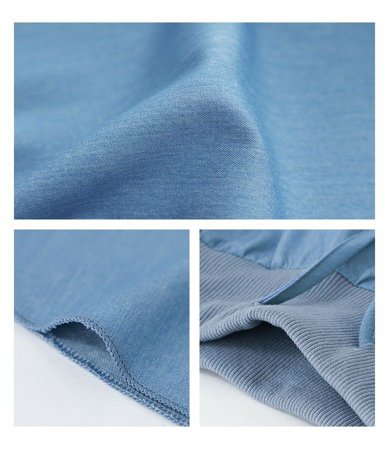さらりとした肌触りの生地を使用。薄手の生地感のため、暑い季節にさらりと着用できます。ウエストのリブ部分は、コットン混で伸縮性がある素材を使用しています。